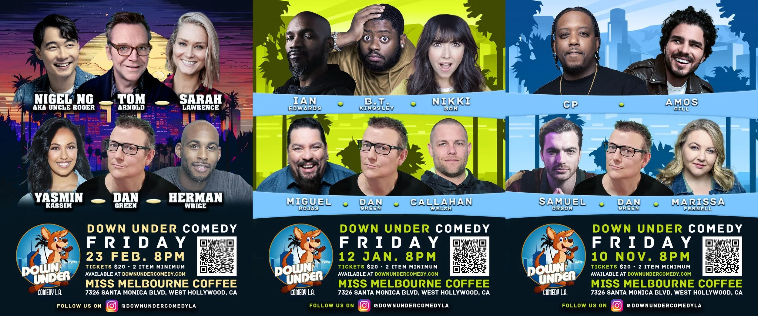 come join us for an epic night of laughs! click here for tickets! this is what you missed last show! we took the FUN on the road! AUSTIN san diego our previous shows! down under comedy took our show to arizona, washington & kansas! For more info please click Here. Contact Us Get your “Aussie” coffee at Follow us on social media
